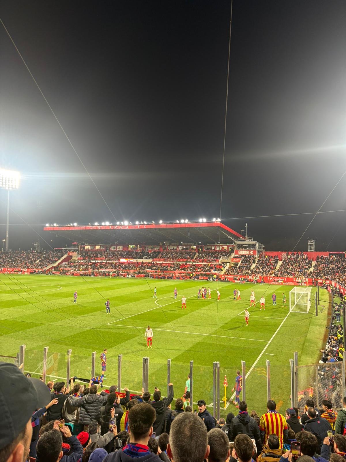 El més especial no va ser només el partit, sinó tot el que l’envolta: la il·lusió del desplaçament, l’ambient als carrers de Girona, les bufandes al vent i la sensació de formar part d’una gran família. El nostre penyista Tomàs Perea va viure el matx a peu de graderia, sentint cada jugada, cada crit i cada emoció des de dins del Estadi Montilivi.